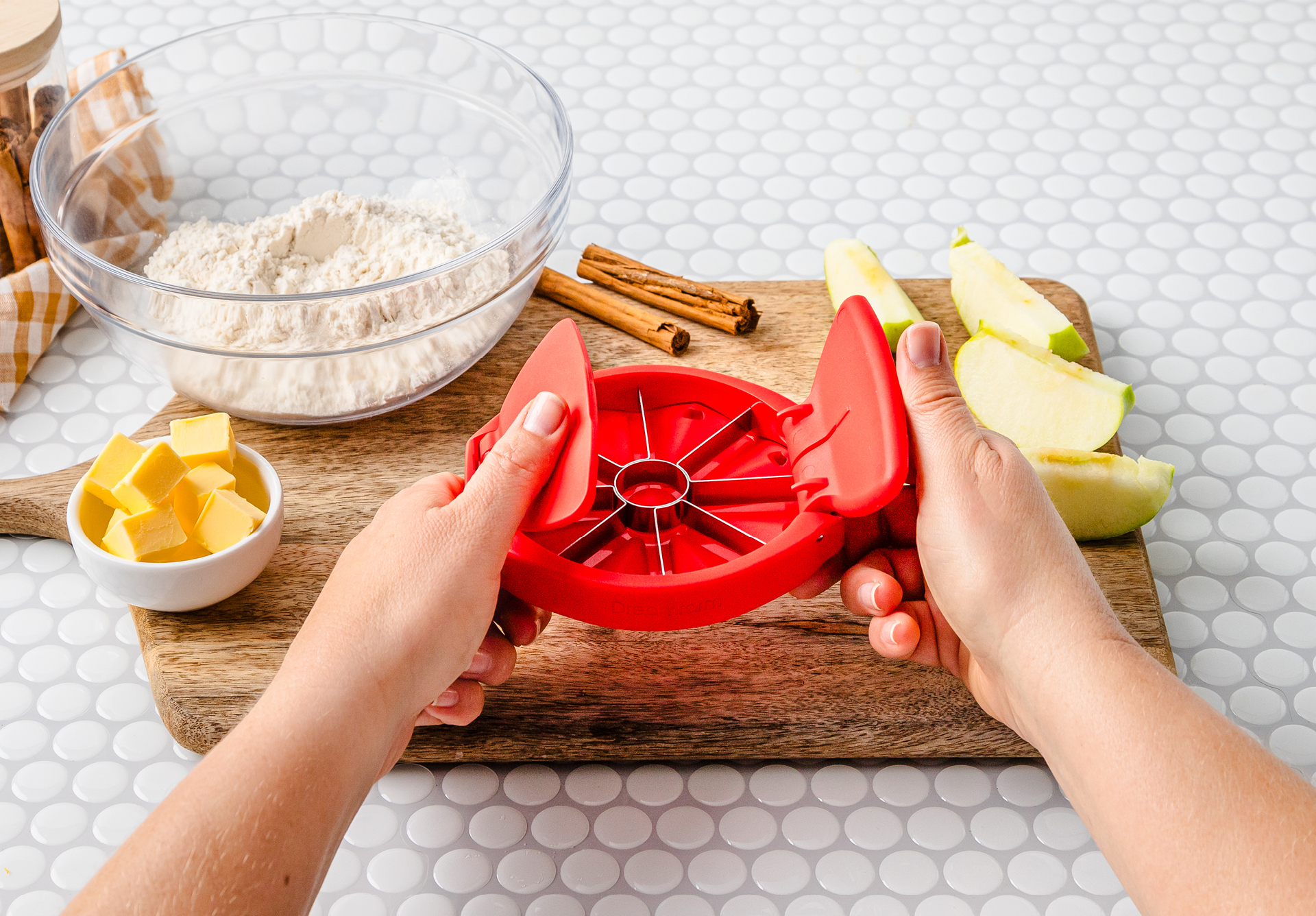 Flapple is an ultra-sharp apple slicer and corer that folds flat for compact storage.