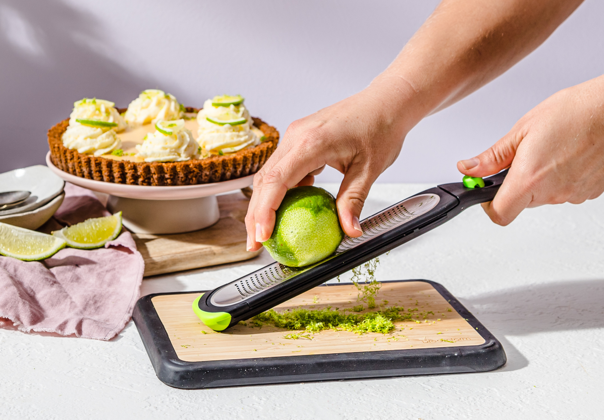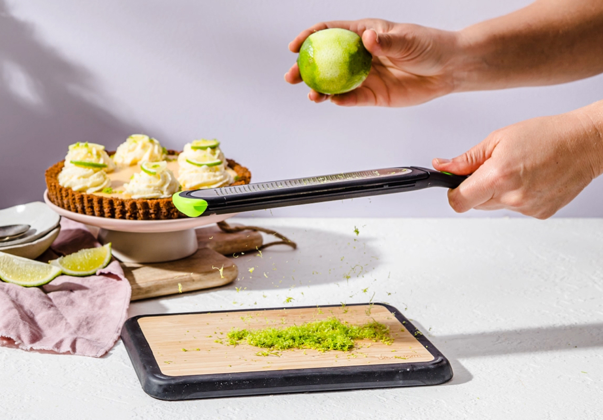 Protective blade cover snaps or slides on for worry-free storage, and doubles as a zest catcher, measuring up to 2 tbsp.