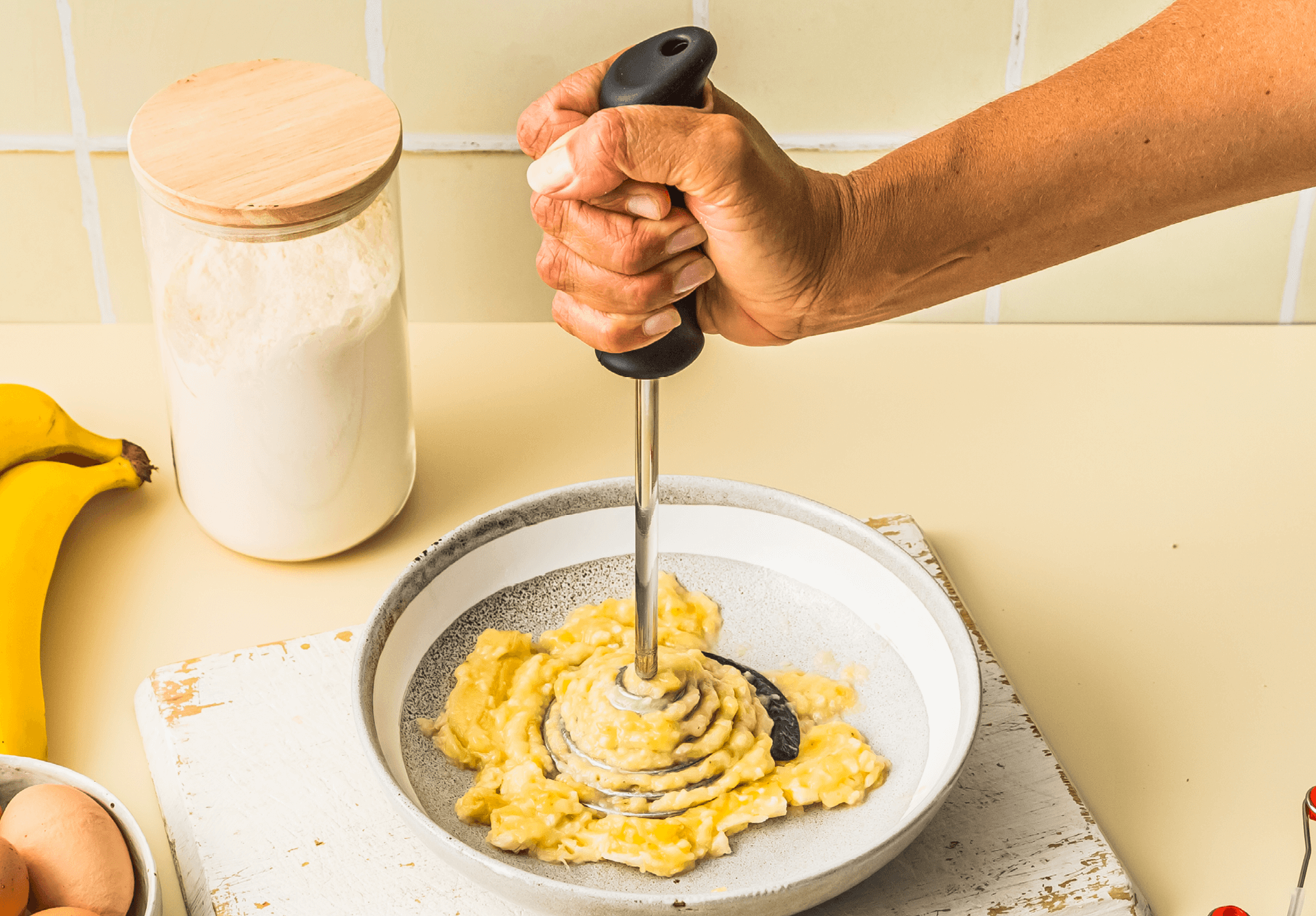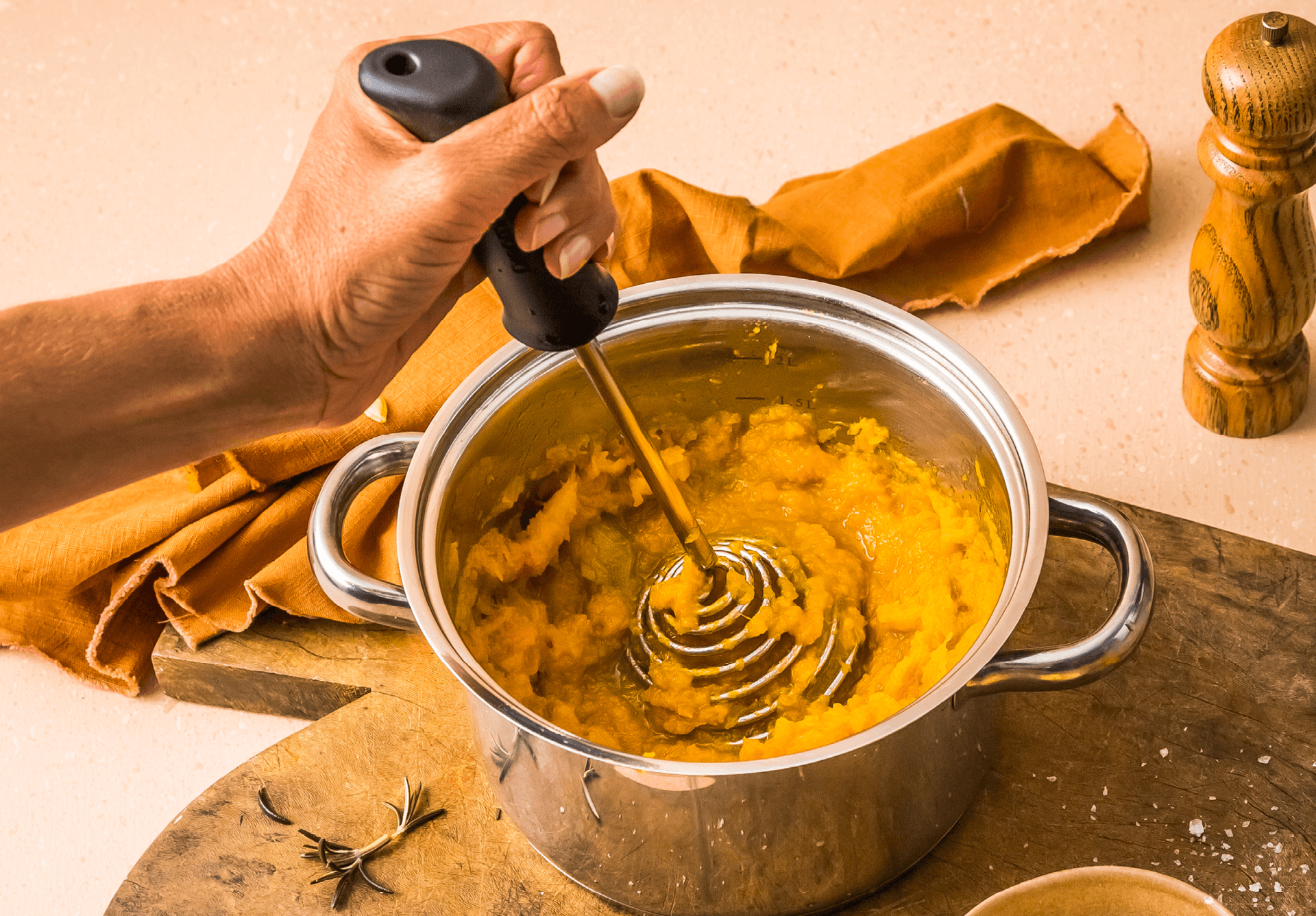 Smood is not a strange-looking whisk, it’s the world’s best potato masher. It makes smooth mash in seconds, scrapes the pot clean and serves. As you push down, Smood’s spring flattens which forces your potato through the thin gap in its coils, creating smooth fluffy mash in just one press. Holla!